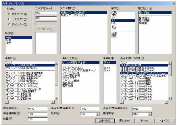 - ダクトやチャンバーの保温・塗装・消音内貼・ダクト遮音の自動計算